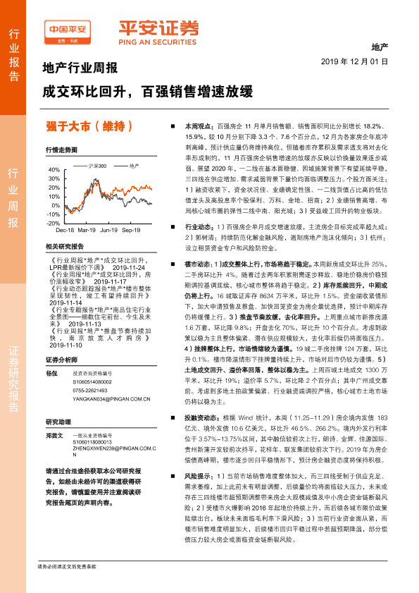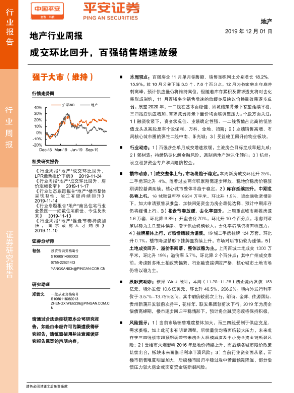 【平安证券】【20191201】地产行业周报:成交环比回升,百强销售增速放缓-6页