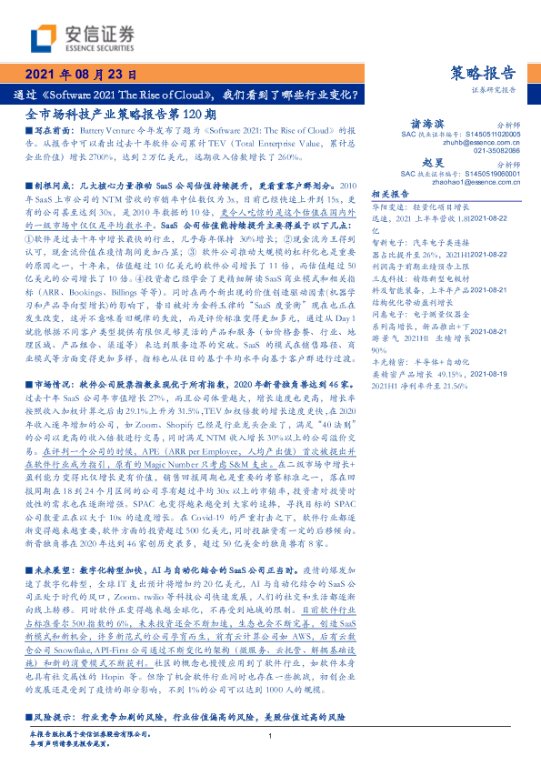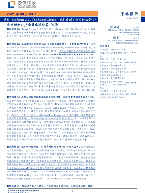【安信证券】【20210823】策略报告第120期:通过《Software 2021 The Rise of Cloud》,我们看到了哪些行业变化?-32页
