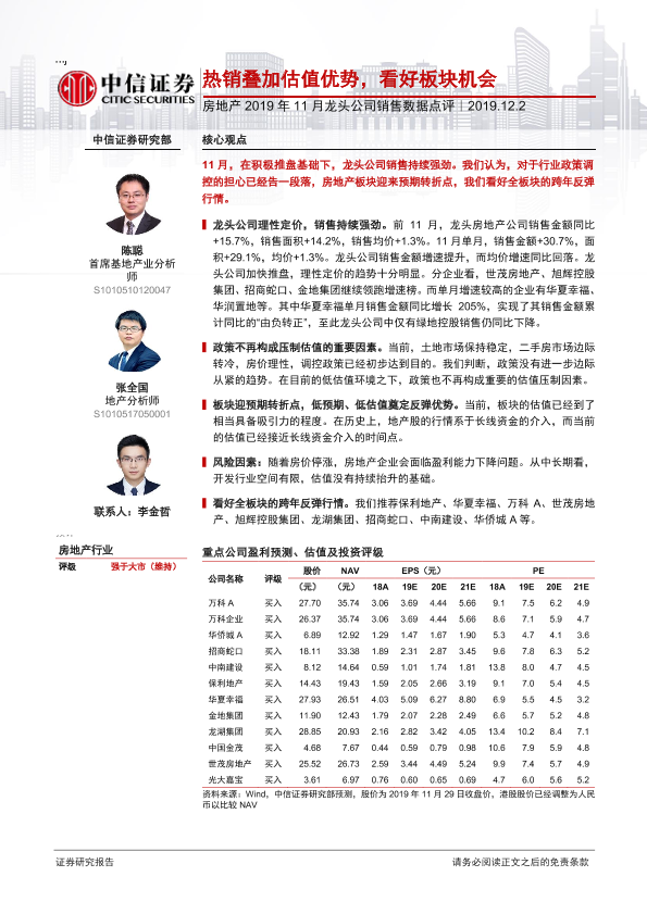 【中信证券】【20191202】2019年11月龙头公司销售数据点评:热销叠加估值优势,看好板块机会-9页