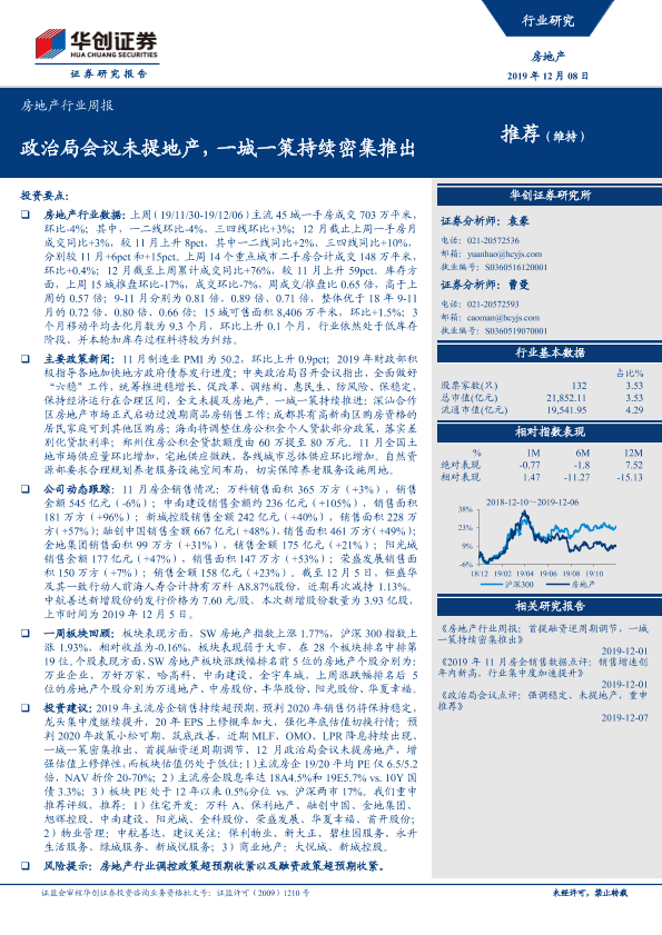 【华创证券】【20191208】房地产行业周报:政治局会议未提地产,一城一策持续密集推出-21页