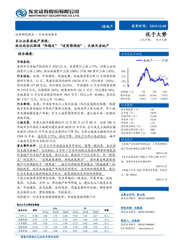 【东北证券】【20191209】政治局会议强调“保稳定”“逆周期调控”,未提及房地产-14页