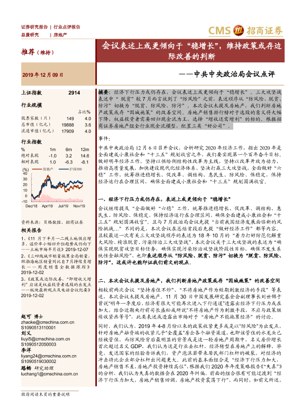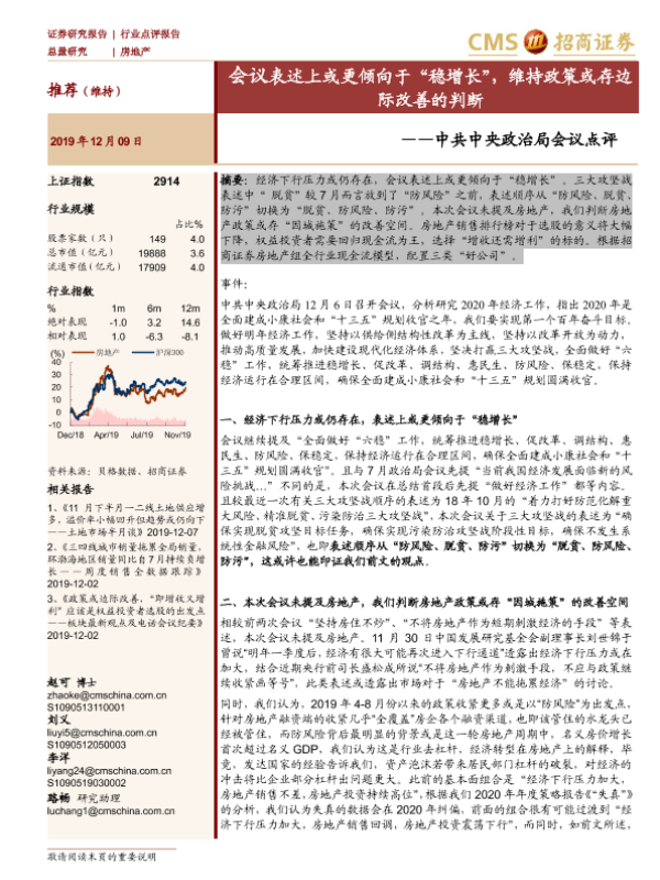 【海通证券】【20191209】房地产中共中央政治局会议点评:会议表述上或更倾向于“稳增长”,维持政策或存边际改善的判断-3页