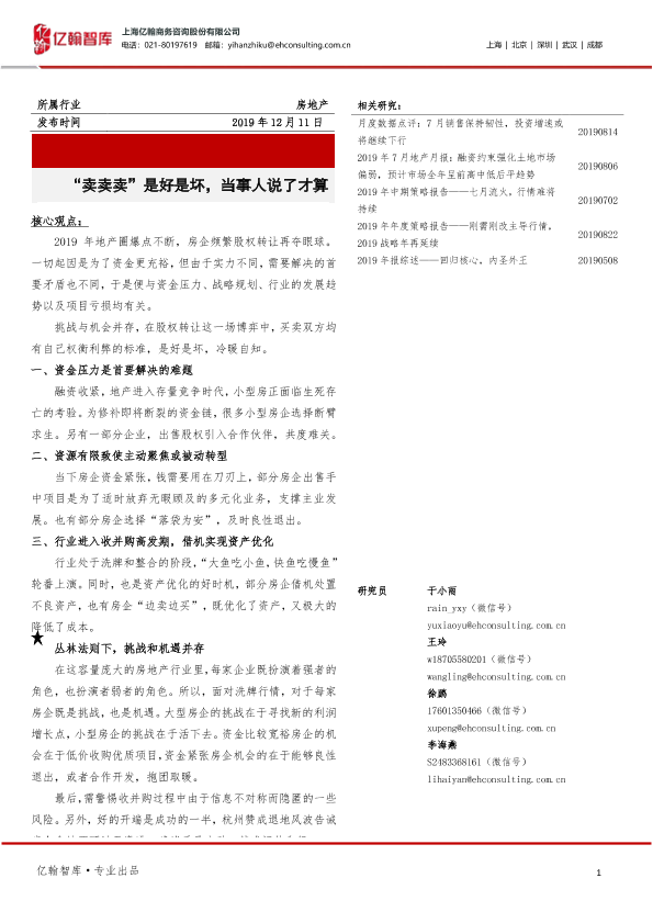 【亿翰智库】【20191211】“卖卖卖”是好是坏,当事人说了才算-8页