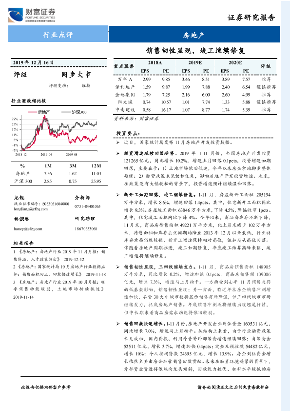 【财信证券】【20191216】房地产行业点评:销售韧性显现,竣工继续修复-3页