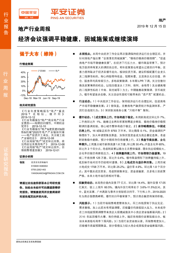【平安证券】【20191215】地产行业周报:经济会议强调平稳健康,因城施策或继续演绎-5页