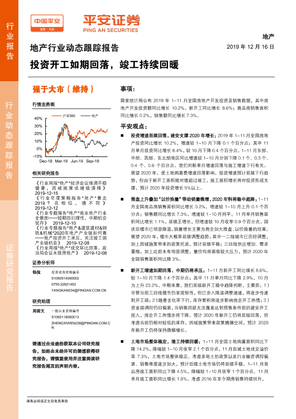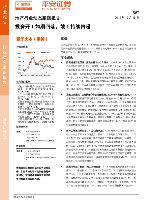【平安证券】【20191216】地产行业动态跟踪报告:投资开工如期回落,竣工持续回暖-15页