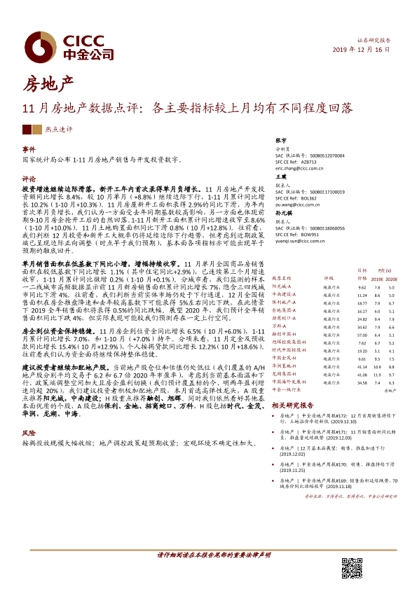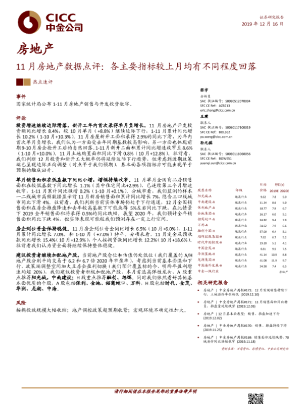 【中金公司】【20191216】11月房地产数据点评:各主要指标较上月均有不同程度回落-10页