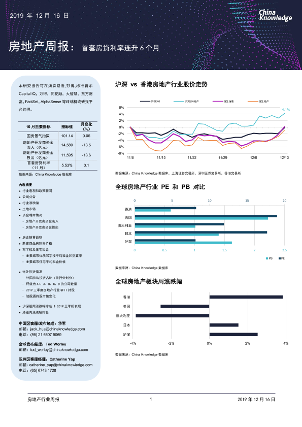 【China Knowledge】【20191216】房地产周报:首套房贷利率连升6个月-18页