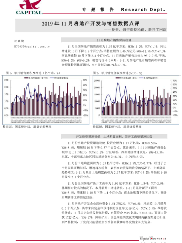 【群益证券】【20191218】2019年11月房地产开发与销售数据点评-2页