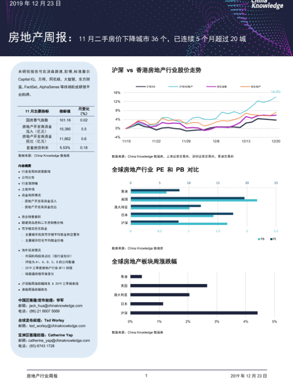 【China Knowledge】【20191223】房地产周报:11月二手房价下降城市36个,已连续5个月超过20城-19页