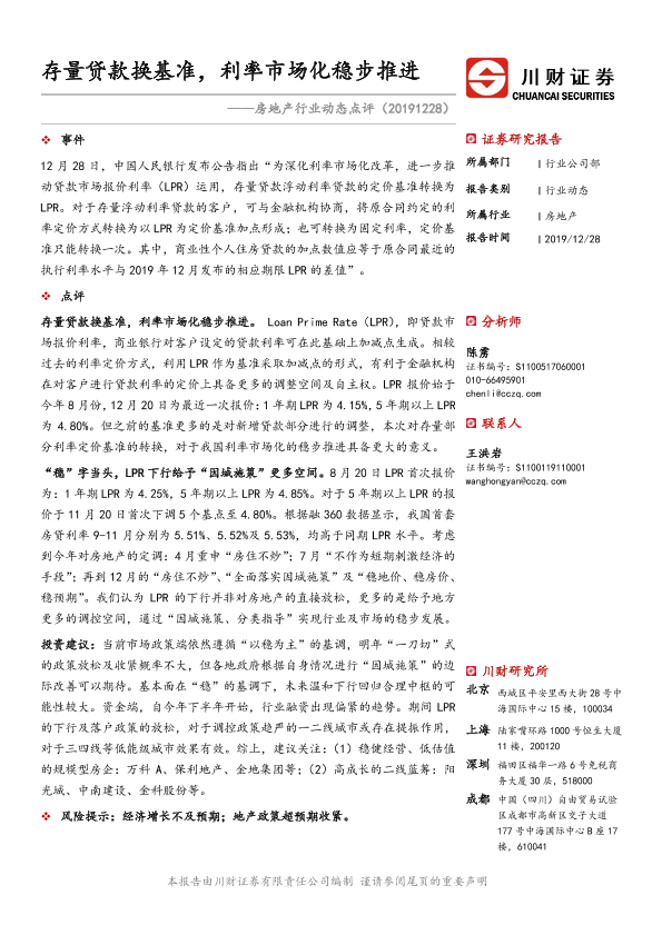 【川财证券】【20191228】房地产行业点评:存量贷款换基准,利率市场化稳步推进-2页