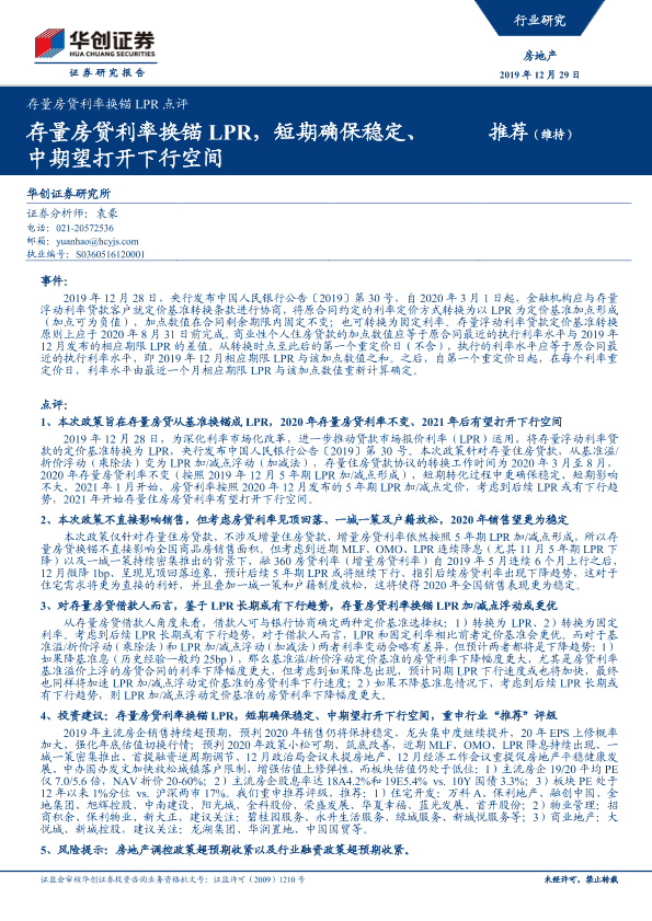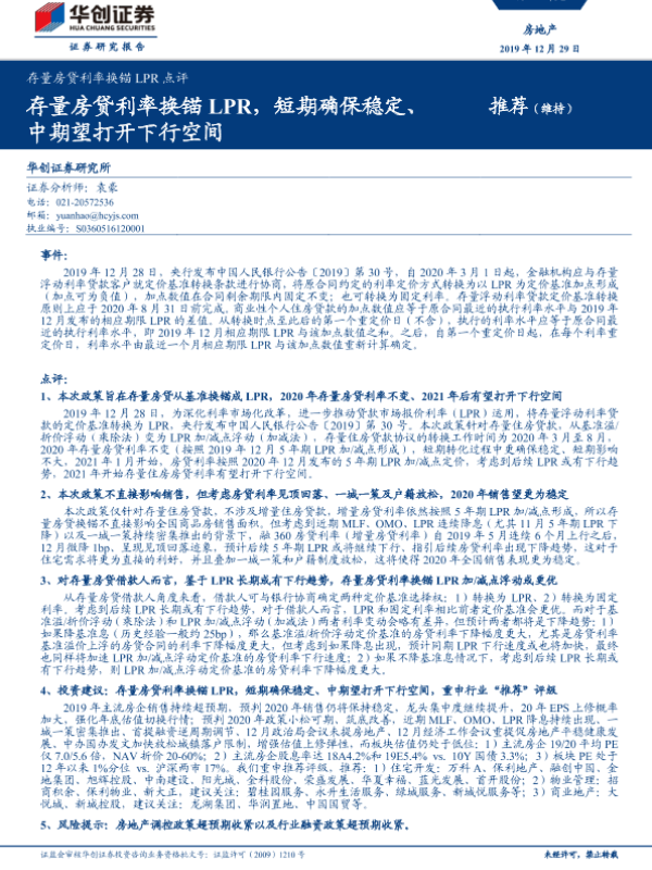 【华创证券】【20191229】存量房贷利率换锚LPR点评-6页