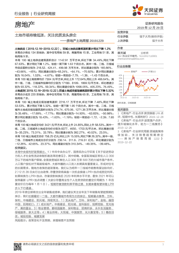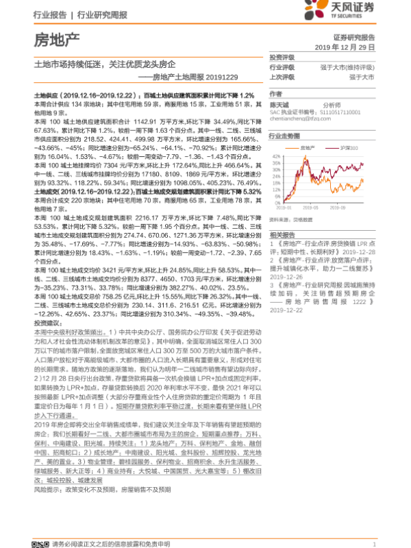 【天风证券】【20191229】土地市场持续低迷,关注优质龙头房企-8页