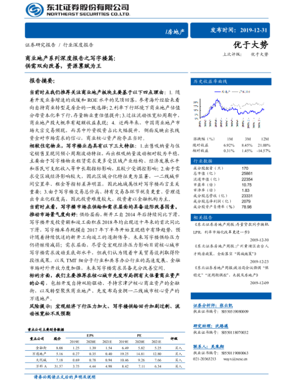 【东北证券】【20191231】商业地产系列深度报告之写字楼篇:供需双向改善,资源禀赋为王-35页