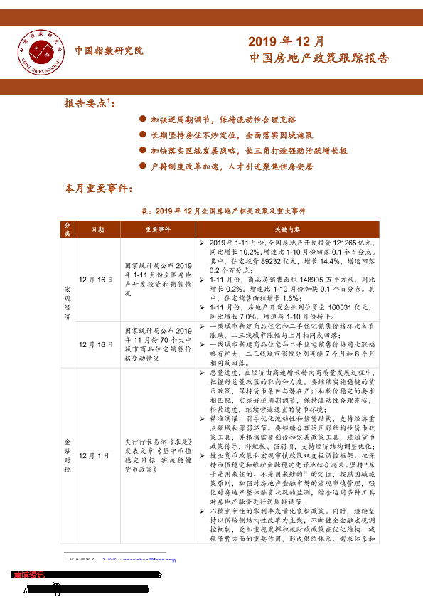 【中指研究院】【20191231】2019年12月中国房地产政策跟踪报告-28页