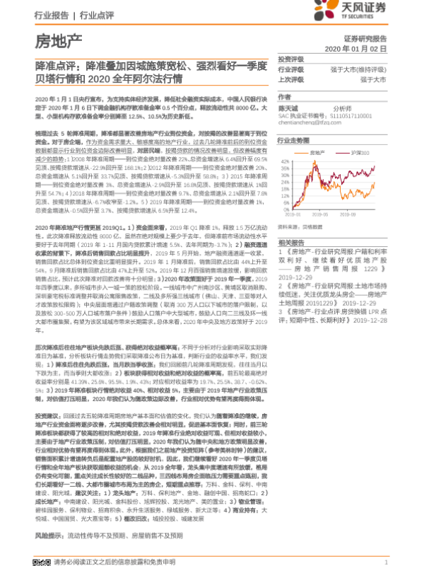 【天风证券】【20200102】房地产降准点评:降准叠加因城施策宽松、强烈看好一季度贝塔行情和2020全年阿尔法行情-2页