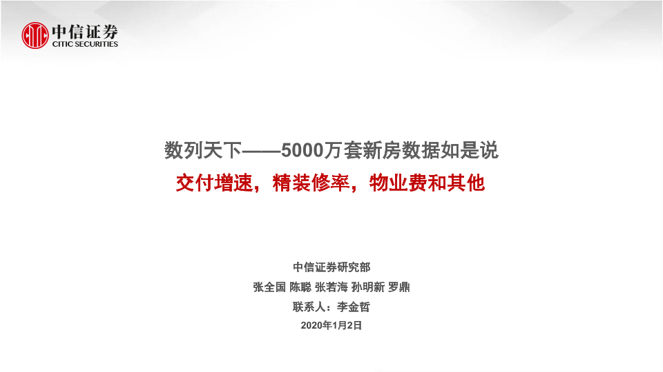 【中信证券】【20200102】数列天下——5000万套新房数据如是说:交付增速,精装修率,物业费和其他-22页