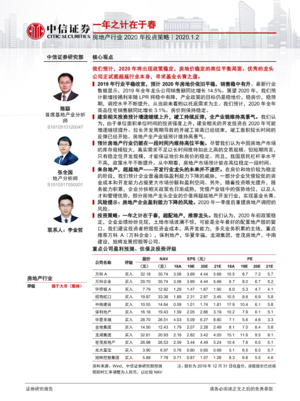 【中信证券】【20200102】房地产行业2020年投资策略-20页