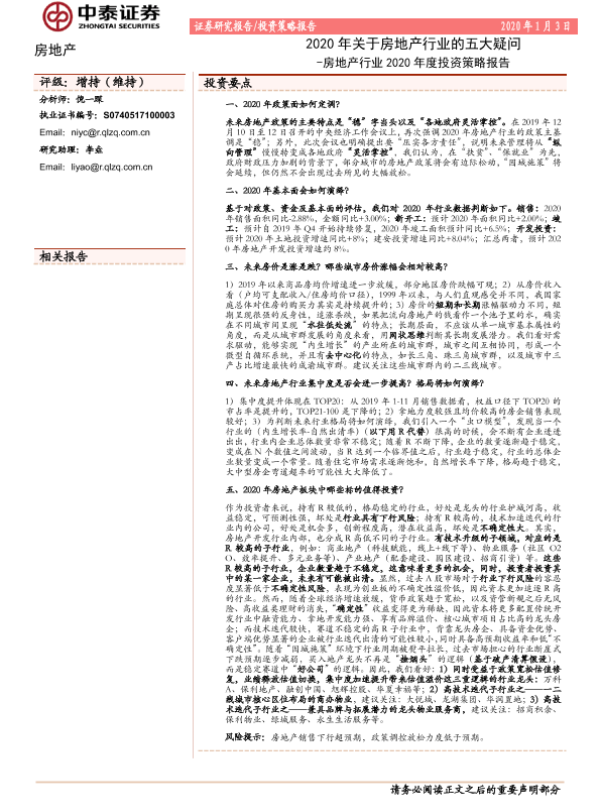【中泰证券】【20200103】2020年关于房地产行业的五大疑问-79页