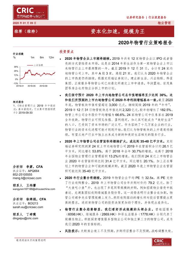 【克而瑞证券】【20200109】2020年物管行业策略报告:资本化加速,规模为王-19页