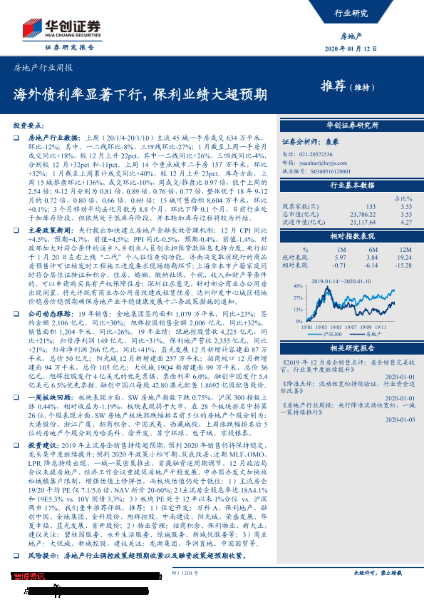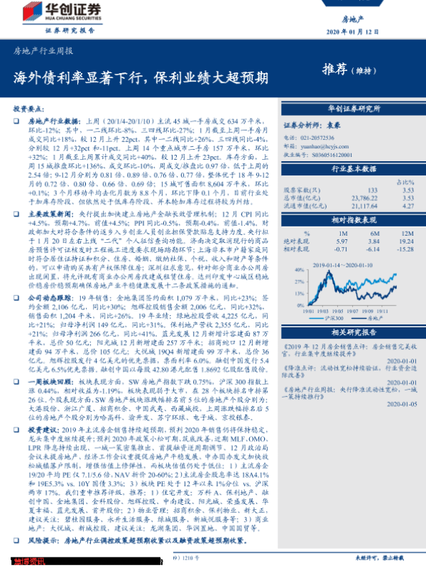 【华创证券】【20200112】房地产行业周报:海外债利率显著下行,保利业绩大超预期-22页