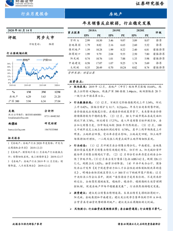 【财信证券】【20200114】年末销售反应较弱,行业稳定发展-13页
