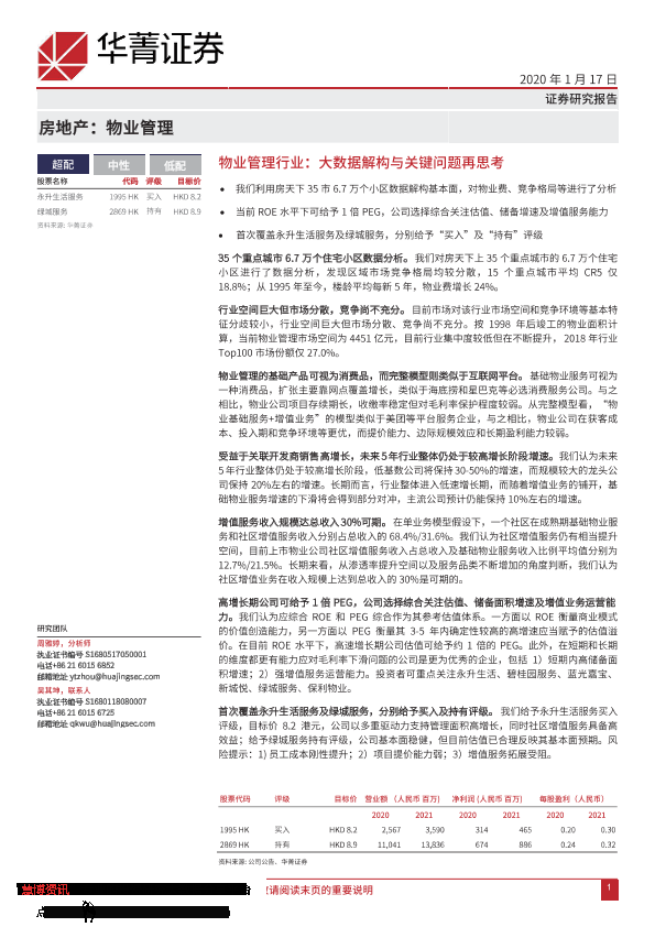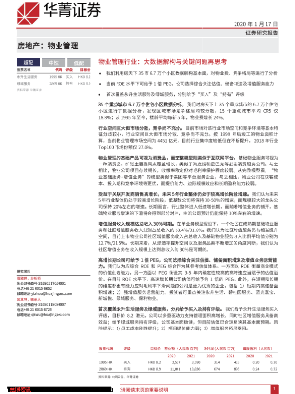 【华兴证券】【20200117】物业管理行业:大数据解构与关键问题再思考-21页