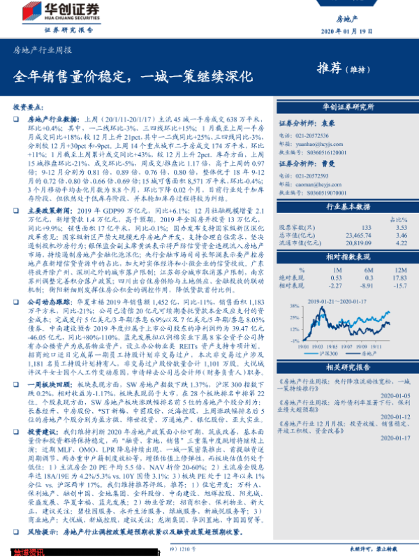 【华创证券】【20200119】房地产行业周报:全年销售量价稳定,一城一策继续深化-21页
