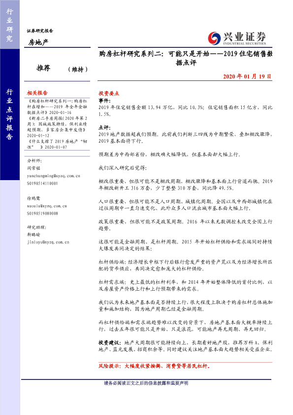 【兴业证券】【20200119】购房杠杆研究系列二:可能只是开始——2019住宅销售数据点评-2页