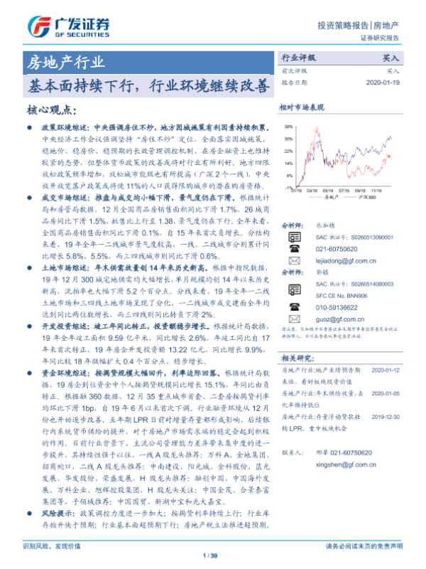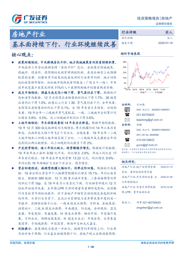 【广发证券】【20200119】房地产行业投资策略报告:基本面持续下行,行业环境继续改善-39页