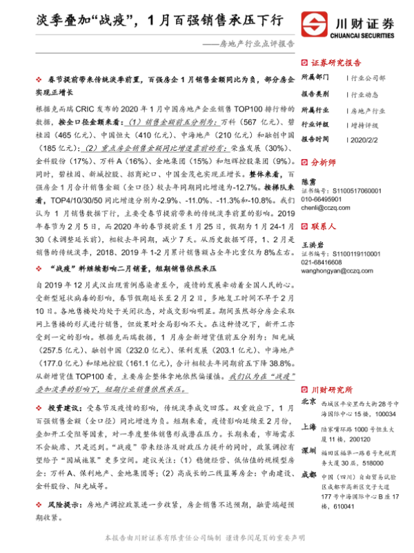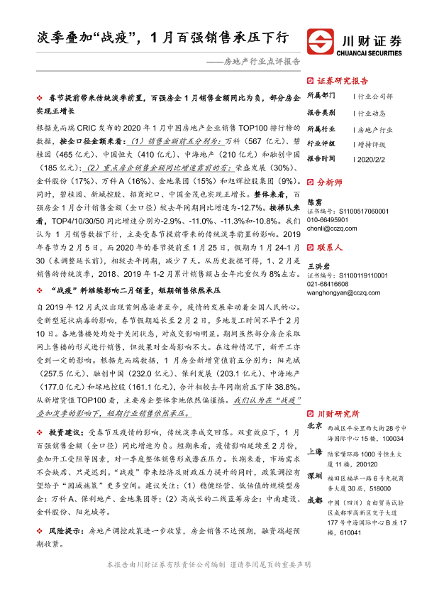 【川财证券】【20200202】淡季叠加“战疫”,1月百强销售承压下行-2页