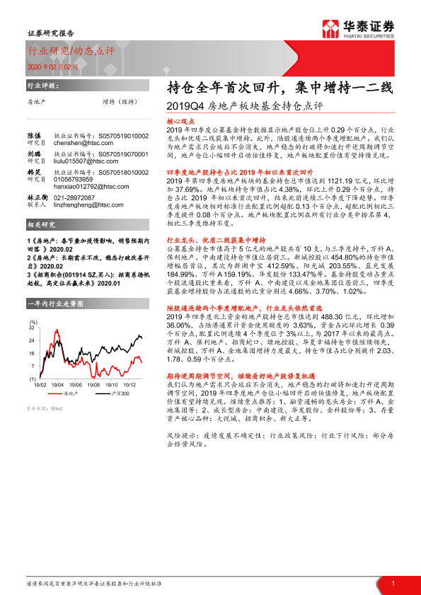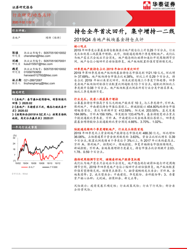 【华泰证券】【20200202】2019Q4房地产板块基金持仓点评-6页
