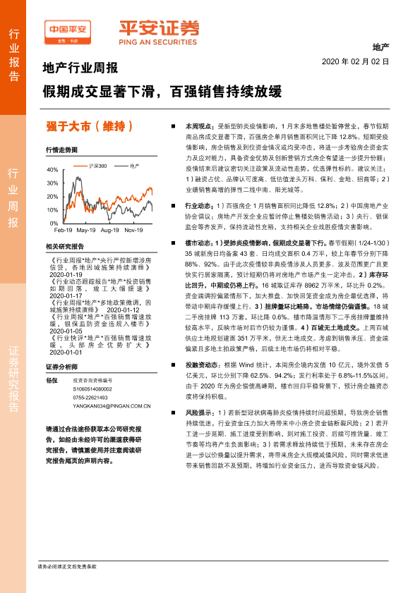 【平安证券】【20200202】地产行业周报:假期成交显著下滑,百强销售持续放缓-5页