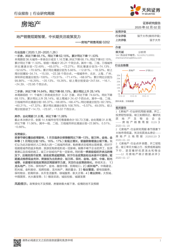【天风证券】【20200202】地产销售短期暂缓,中长期关注政策发力-11页