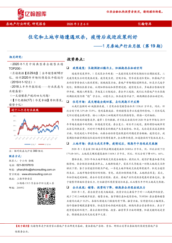 【亿翰智库】【20200206】1月房地产行业月报:住宅和土地市场遭遇双杀,疫情后或迎政策利好-26页