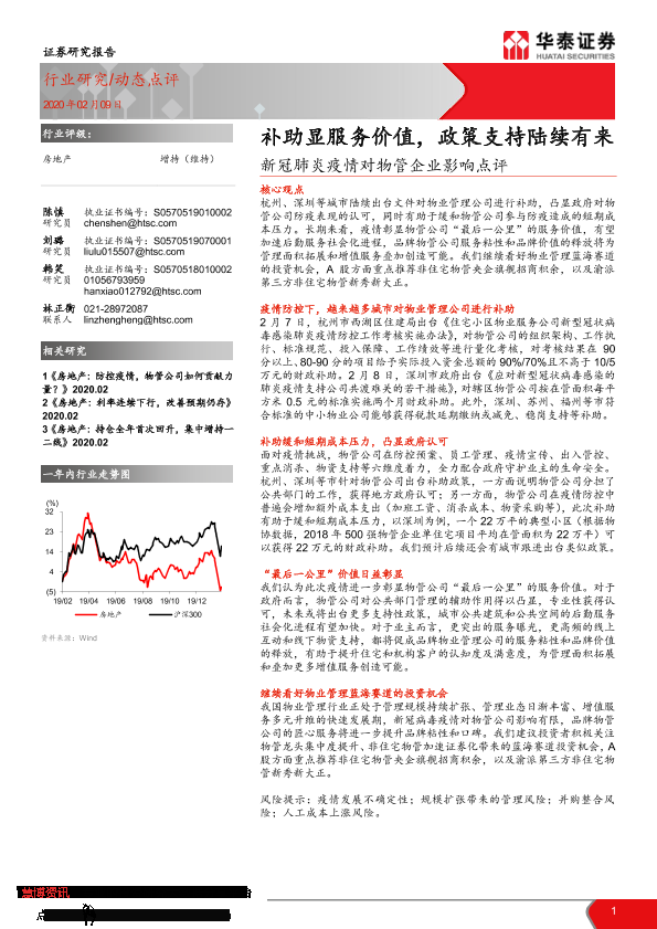 【华泰证券】【20200209】新冠肺炎疫情对物管企业影响点评:补助显服务价值,政策支持陆续有来-4页