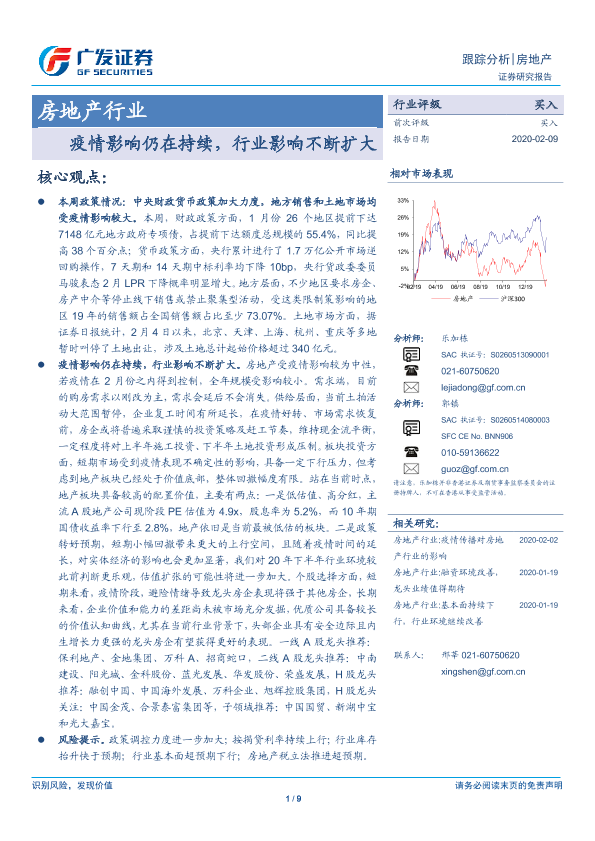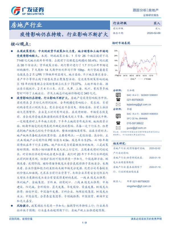 【广发证券】【20200209】房地产行业跟踪分析:疫情影响仍在持续,行业影响不断扩大-9页