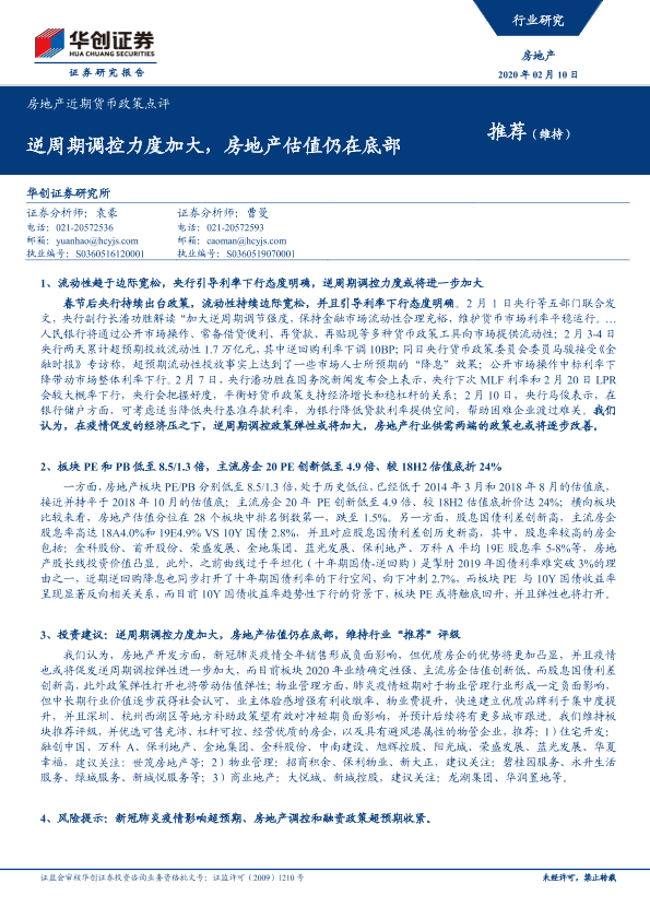 【华创证券】【20200210】房地产近期货币政策点评-15页