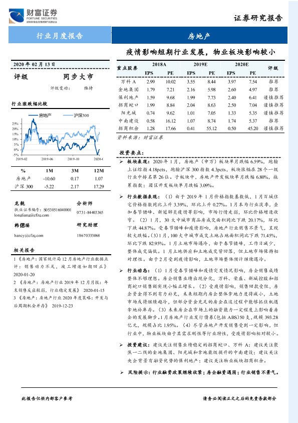 房地产 月度报告 物业板块 疫情影响 行业分析