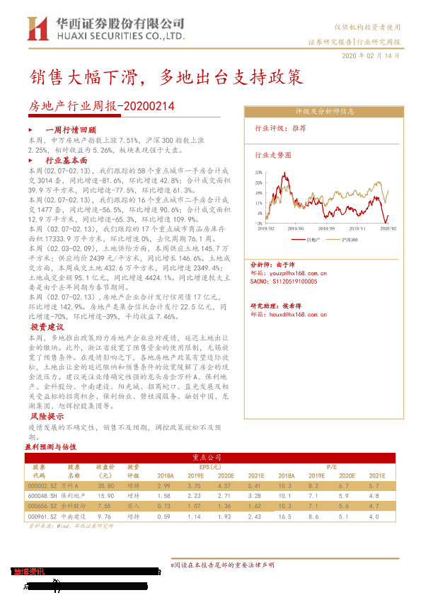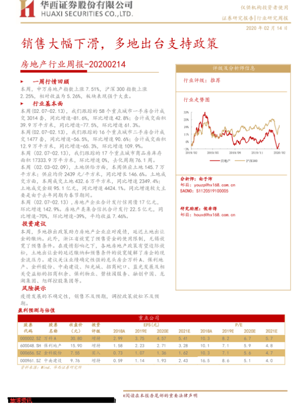 【华西证券】【20200214】房地产行业周报:销售大幅下滑,多地出台支持政策-20页