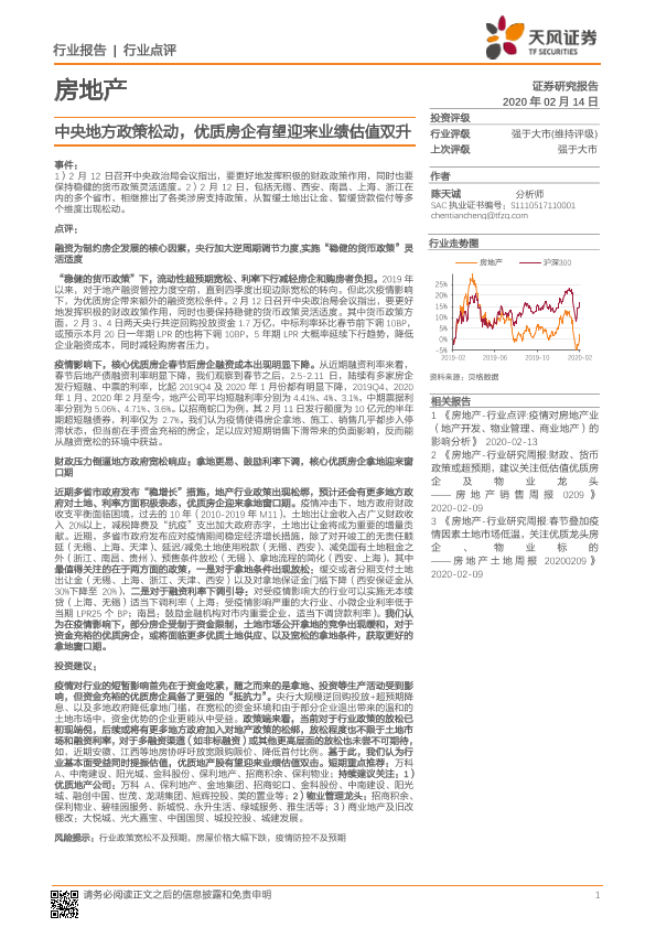 【天风证券】【20200214】中央地方政策松动,优质房企有望迎来业绩估值双升-4页