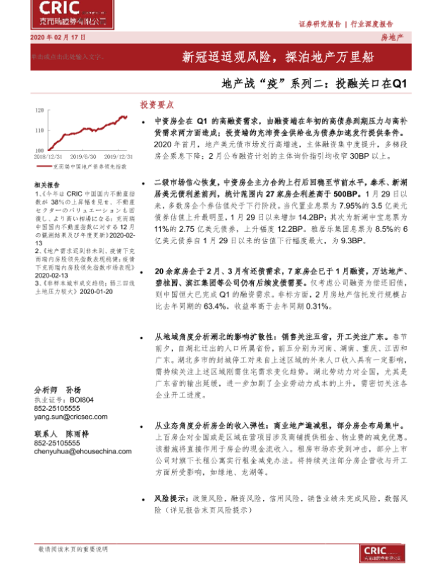 【克而瑞证券】【20200217】地产战“疫”系列二:投融关口在Q1:新冠迢迢观风险,探泊地产万里船-13页