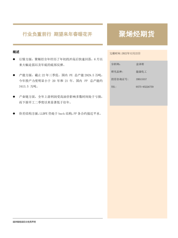 【大越期货】【20221222】聚烯烃期货年度报告:行业负重前行,期望来年春暖花开-17页
