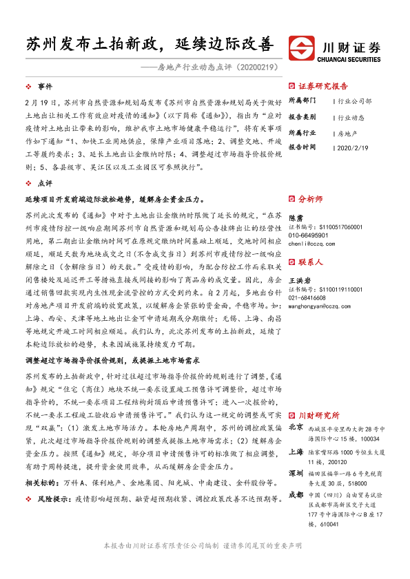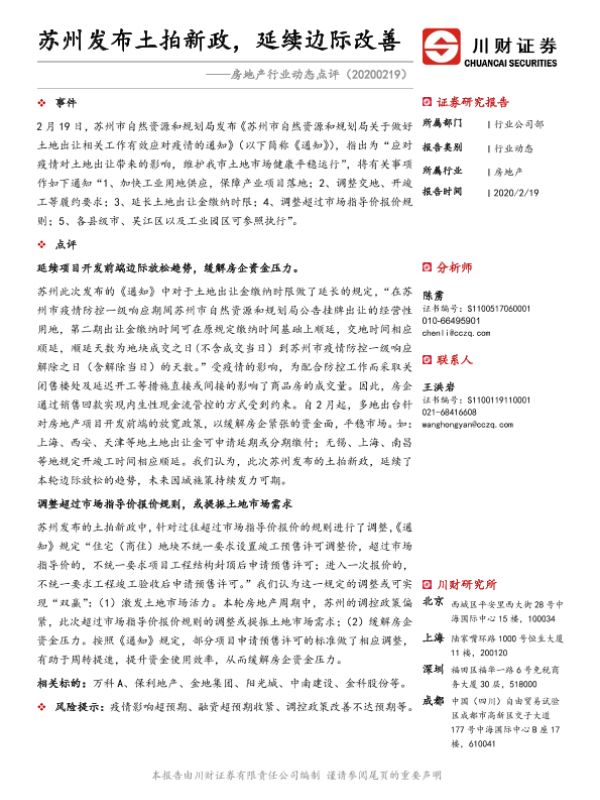 【川财证券】【20200219】房地产行业动态点评:苏州发布土拍新政,延续边际改善-2页