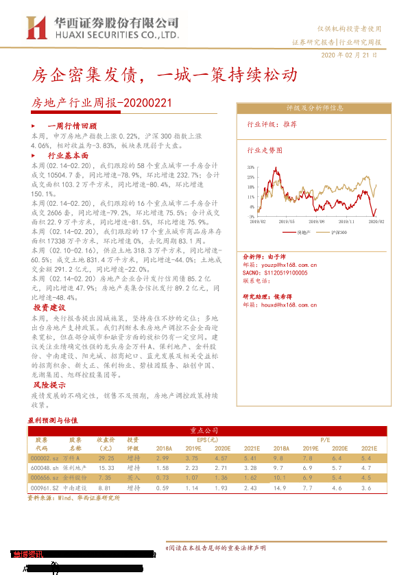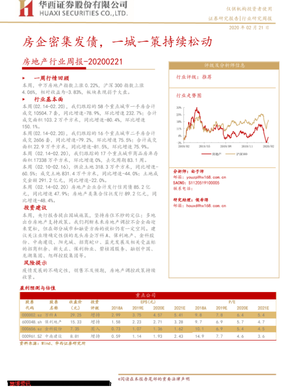【华西证券】【20200221】房地产行业周报:房企密集发债,一城一策持续松动-22页