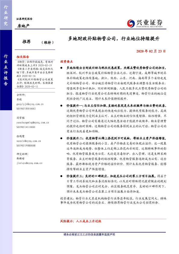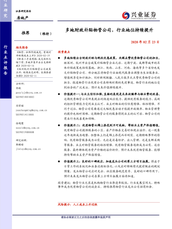 【兴业证券】【20200223】多地财政补贴物管公司,行业地位持续提升-2页