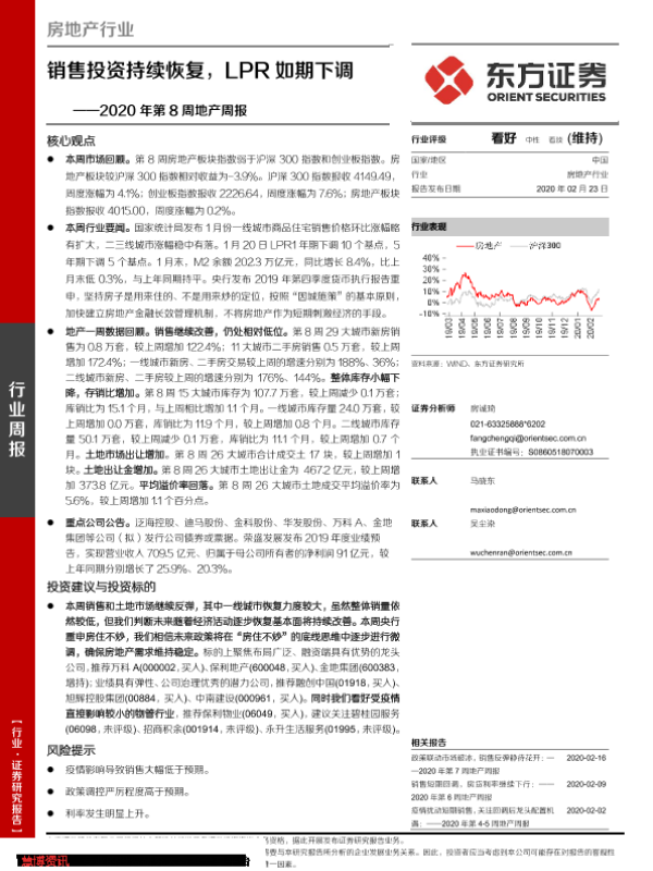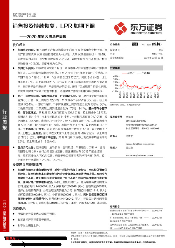 【东方证券】【20200223】2020年第8周地产周报:销售投资持续恢复,LPR如期下调-17页