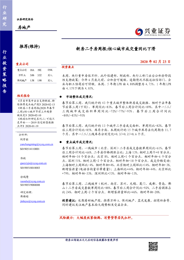 【兴业证券】【20200223】新房二手房周报 核心城市成交量同比下滑-12页
