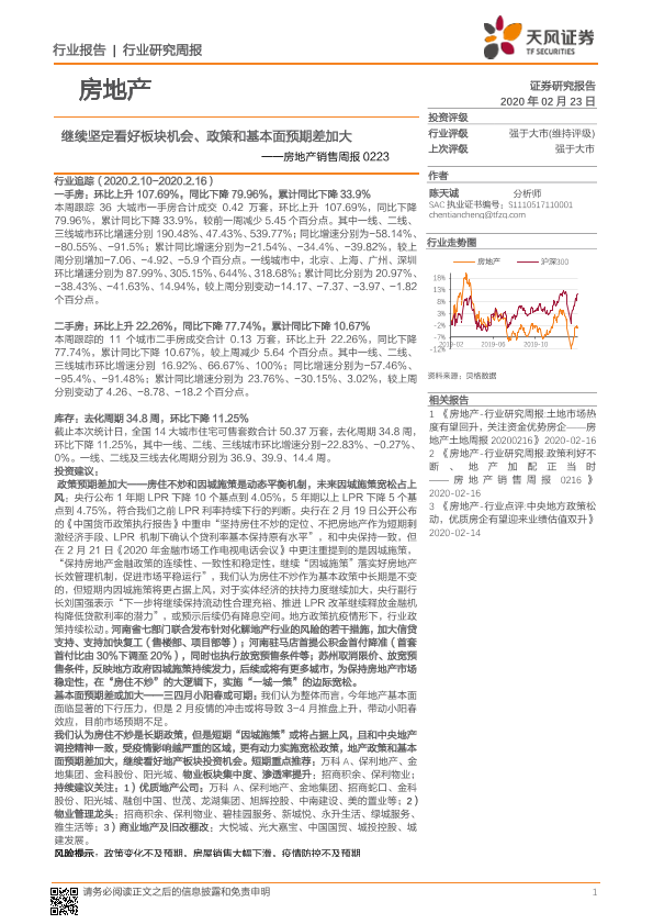 【天风证券】【20200223】继续坚定看好板块机会、政策和基本面预期差加大-13页