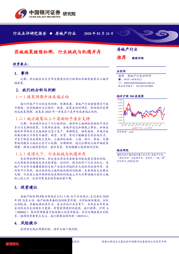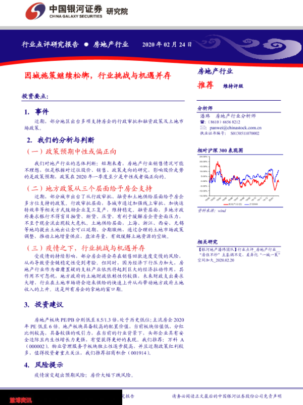 【银河证券】【20200224】房地产行业:因城施策继续松绑,行业挑战与机遇并存-4页